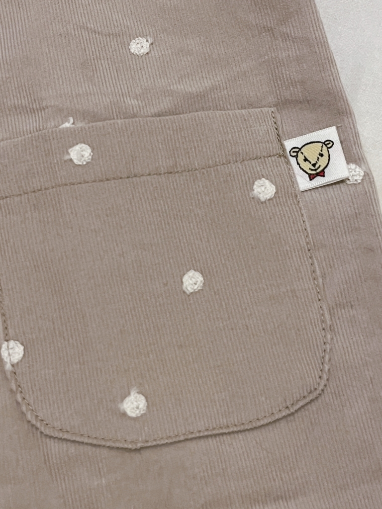 フレンチコーデュロイに林檎の刺しゅう、ソイラテにアイボリー